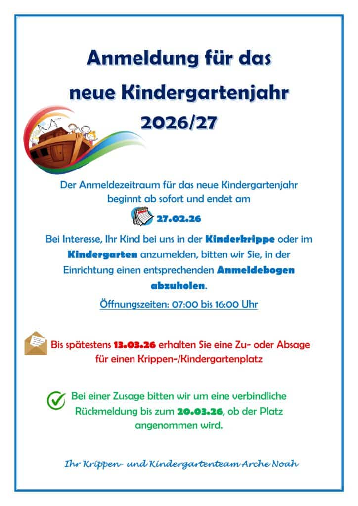 Anmeldung für das neue Kindergartenjahr 2026/27